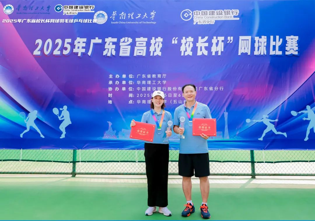 7月4日至6日,由广东省教育厅主办、华南理工大学承办的2025年广东省高校“校长杯”网球、羽毛球、乒乓球比赛在广州成功举行。来自省教育厅及全省127所高校的240多位领导干部同场竞技。学校党委书记陶韶菁搭档学校原党委副书记、纪委书记招乐辉出战网球混合双打项目,经过角逐,荣获亚军。