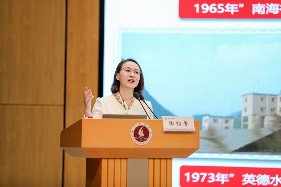 时代出卷,行动答题。陶韶菁介绍了广东和广州因海而兴、向海图强的历史,指出粤港澳大湾区融湾入海的时代已经到来,鼓励同学们紧跟国家和区域发展战略,成为推动产业升级的新生力量。她还深情讲述了学校应时代之需而诞生,随时代发展而成长的历史。她指出,学校与南海神庙和海上丝绸之路有着不解之缘,代代广航人初心如磐、坚韧奋斗,在守卫海疆、维护国家海洋权益、推动海洋与交通科技创新突破、发展海洋经济等方面做出了独特贡献,从而沉淀了红色爱国精神底色、绿色奋斗精神底色和蓝色海洋情怀底色。