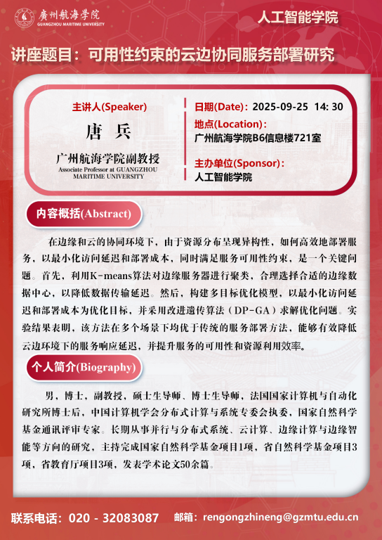 学术讲座预告:唐兵《可用性约束的云边协同服务部署研究》-欧美精品日韩二区三区_欧美精品亚洲精品日韩专区_欧美日韩人妻精品系列一区二区三区_91在线无码精品秘 入口91_日韩人妻无码精品无码中文字幕_精品少妇人妻av无码久久_精品人妻无码一区二区色欲AⅤ_精品久久久久久人妻无码中文字幕_91人妻人人澡人人爽人人精品_久久午夜无码鲁丝片午夜精品_精品久久久久久人妻无码中文字幕